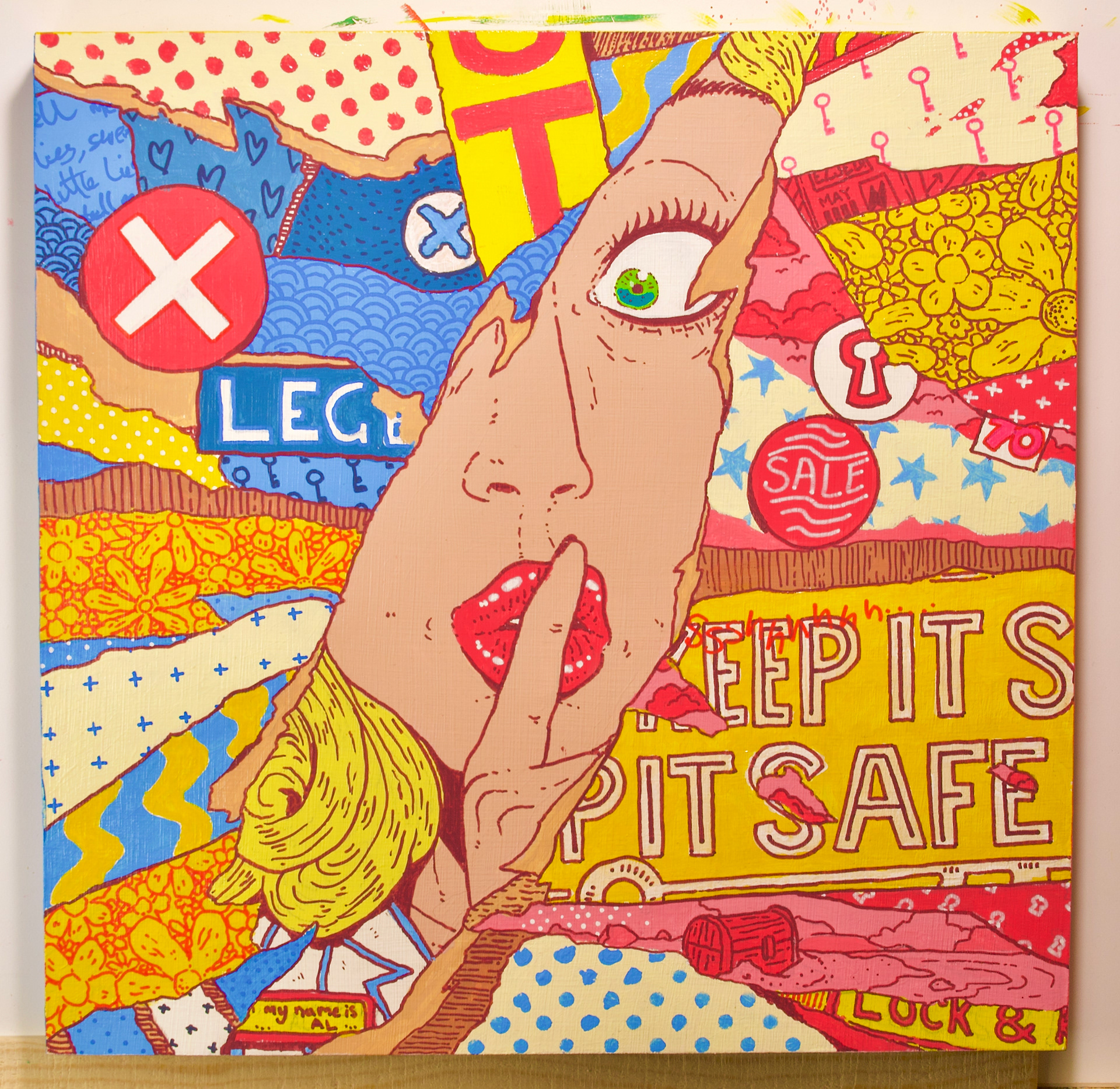 Mixed media on recycled cradled board, 305mm x 305mm.